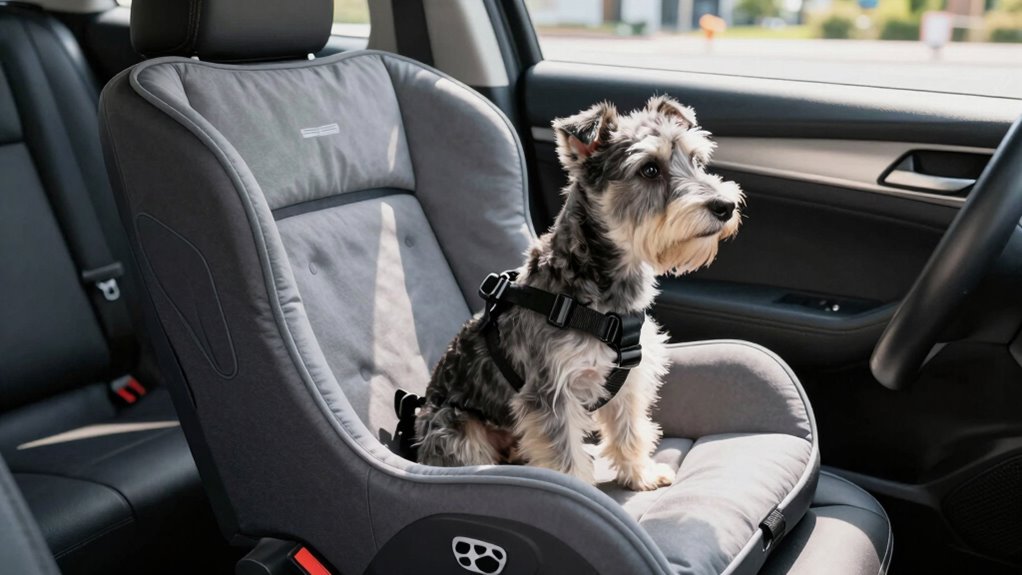 Just like I trust a sturdy ship in a storm, choosing a crash-tested dog car seat means I prioritize my small dog’s safety above all. Remember, even the tiniest life vest can make a difference in turbulent waters. So, when you’re selecting the best seat, think of it as a guardian’s embrace—firm, reliable, and always ready to protect. After all, our furry friends deserve nothing less than a safe voyage.